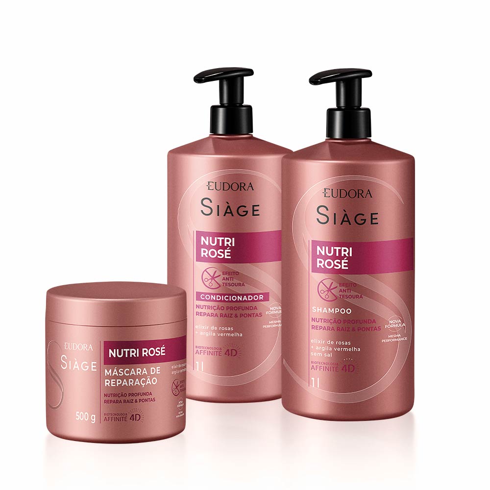 Combo Nutri Rosé: Shampoo 1L + Condicionador 1L + Máscara Capilar 500g + 2 Válvulas Pump